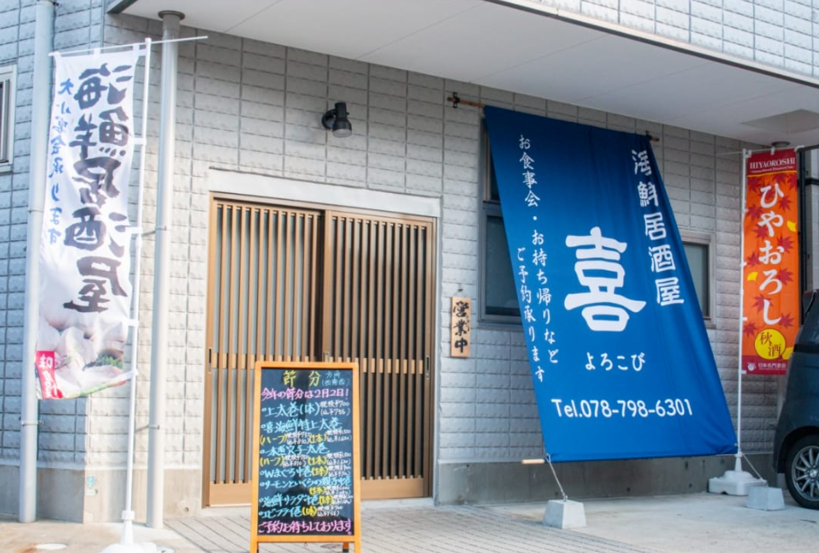兵庫県神戸市垂水区川原に店を構える「海鮮居酒屋 喜」。暖簾をくぐると、まず目に飛び込んでくるのは店内に設けられた生簀だ。ゆったりと泳ぐ魚たちの姿が、この店の鮮度へのこだわりを何よりも雄弁に物語っている。