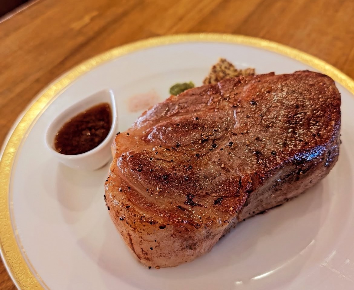 料理はすべて店主の手作り。ソースひとつ、ドレッシングひとつに至るまで、自らの手で仕込むことを大切にしている。たとえば人気の肉料理は、下味から火入れまで徹底して管理し、旨みを最大限に引き出す。グリルで焼き上げる牛肉は、香ばしい表面と肉汁を抱え込むジューシーさが同居し、付け合わせの野菜も季節ごとに変えることで、四季の移ろいを皿の上に表現している。