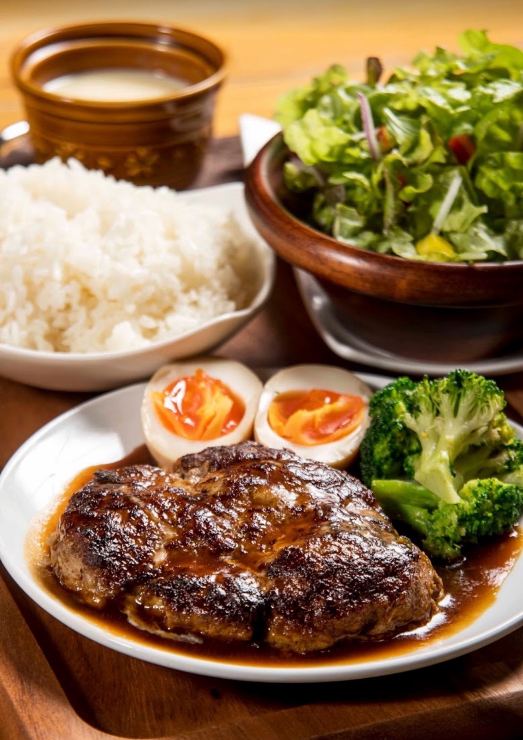 店内は木の温もりに包まれた落ち着いた空間で、ランチにもディナーにも心地よい時間が流れる。地元の食材を生かしたメニューも多く、季節ごとに変わる限定ソースを楽しみに訪れる常連客も少なくない。