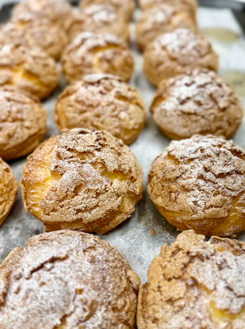 シュークリームの生地は軽やかでありながらも適度な歯ごたえがあり、中に詰められるクリームとのバランスが絶妙だ。カスタードは甘さを抑えつつコクがあり、最後まで飽きずに食べられる味わい。シンプルだからこそ技術の差が出る一品であり、東京での修行で培った経験が活かされていると感じられる。