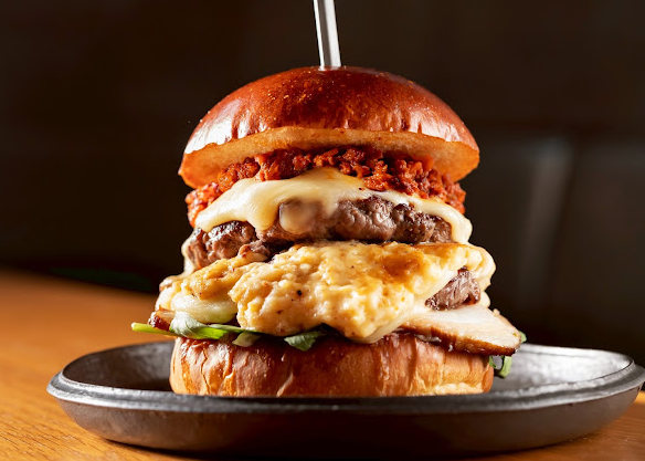 同店の主役は、店名にも掲げられているハンバーガー。しかし、そのコンセプトは一般的な“ボリューム勝負”のバーガーとは一線を画す。「最後までおいしく食べきれること」を何より大切にしているという。目指したのは、ナポリピッツァのように軽やかで、食べ進めても重たさを感じない仕上がり。素材のバランスや焼き加減、油分の調整まで細かく計算され、満足感がありながらも驚くほど軽やかな食後感を実現している。