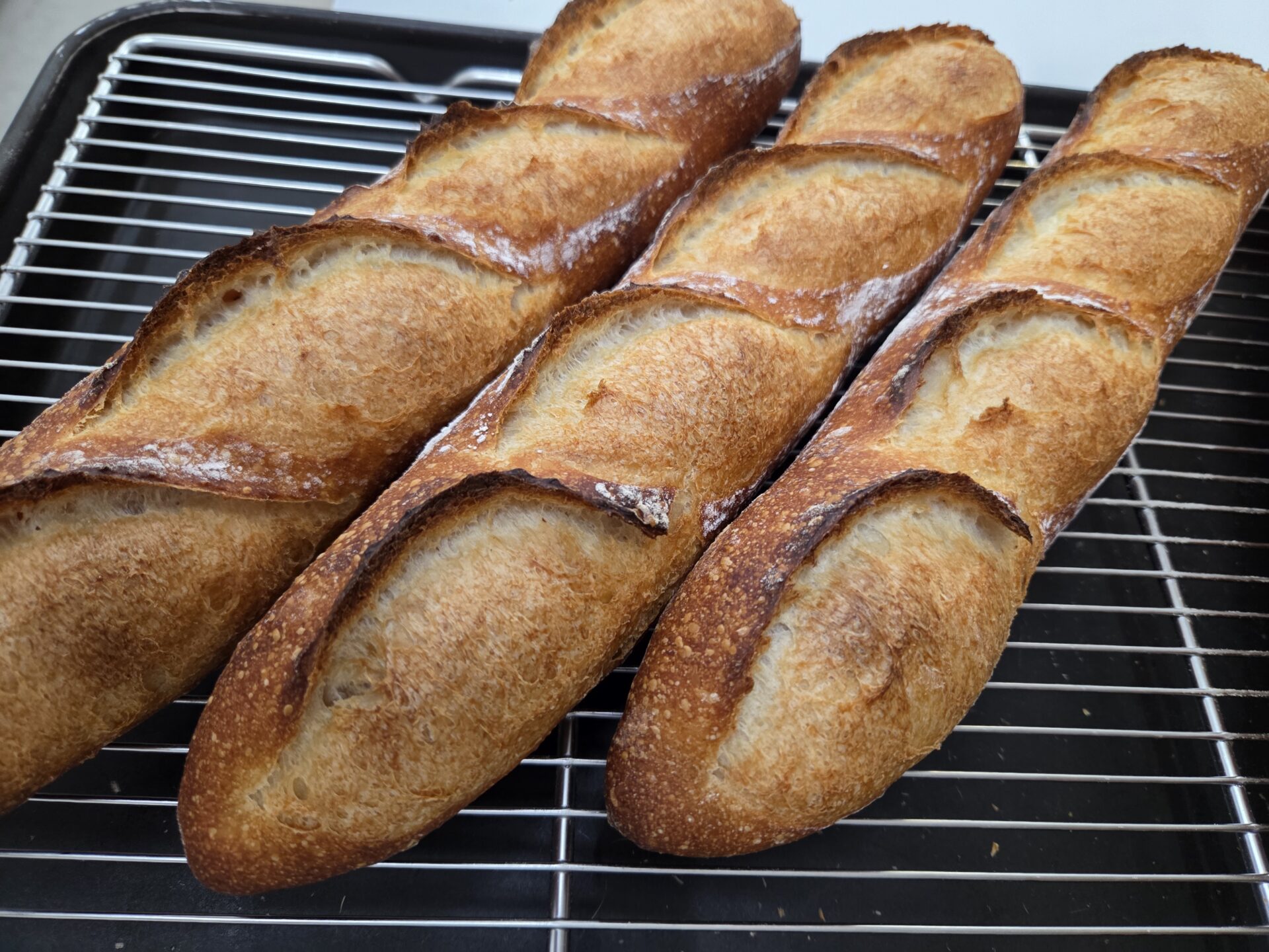 なかでも看板商品「バゲット壱本松」は、店の誇りを象徴する一本だ。外はパリッと香ばしく、中はしっとりとみずみずしいクラム。噛みしめるほどに小麦の甘みと香りが広がり、食べる人の心を掴む。焼き上がった瞬間のバゲットは、表面に小さなひびが入り、パチパチと音を立てて“呼吸”している。その瞬間こそ、職人が最も大切にしている時間だという。