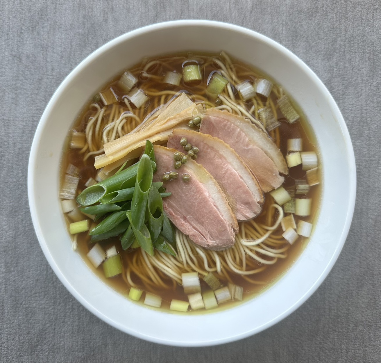 トッピングもまた、必要最小限でありながら一つひとつが丁寧だ。しっとりと仕上げられたチャーシューは肉の旨みをしっかりと感じさせ、スープを邪魔しない絶妙な味付け。香味野菜や薬味も、全体のバランスを崩すことなく、後味に心地よい余韻を残す役割を担っている。