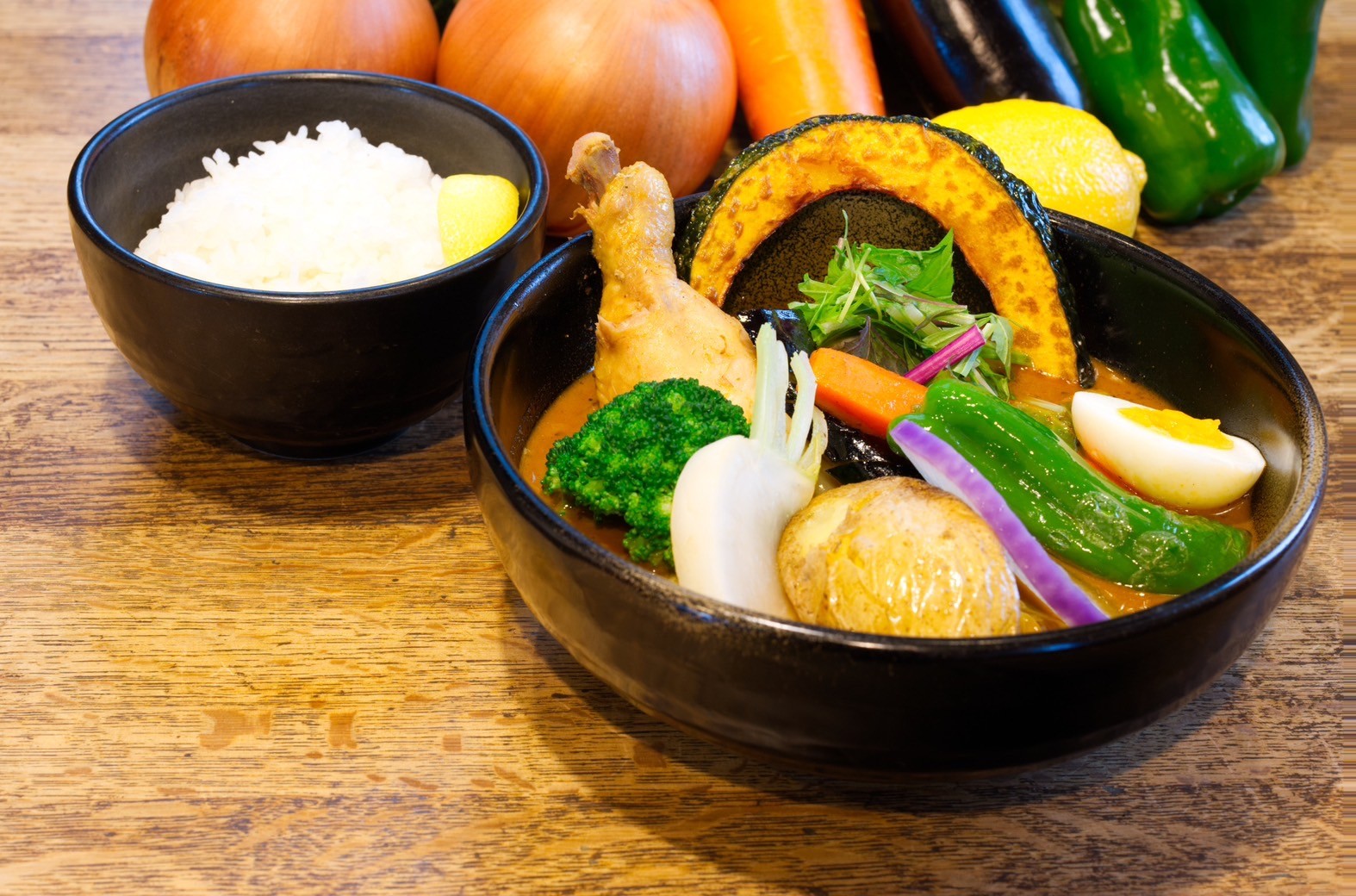 ダントツの一番人気は、「やわらかチキンと大地の恵み」。大きな骨付きチキンと野菜が盛りだくさんな一杯です。また限定カレーはその時にしか味わえない特別感があり、常連客からも高い支持を集めています。旬の食材と奥芝商店自慢の海老スープが融合し、毎月異なる表情を見せてくれるため、何度訪れても楽しみが尽きません。