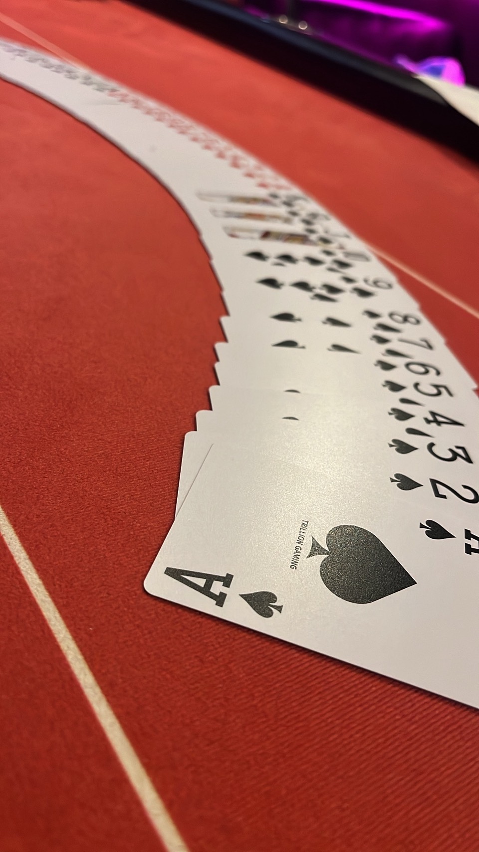全卓に導入されているのは、オートシャットフラー。カードを自動でシャッフルしてくれるため、ゲーム進行はスムーズで、待ち時間のストレスがない。初心者にとってはルール理解に集中でき、経験者にとってはテンポの良いプレイが楽しめる。設備面への投資からも、この店が“快適な遊び場”であることを重視している姿勢が伝わってくる。