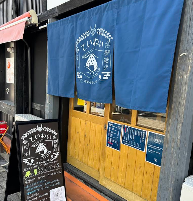 長野県松本市中央の一角に、昼の時間だけひっそりと暖簾を掲げるおむすび専門店「御結び ていねい」。間借りというスタイルで営業するこの店は、どこか家庭の台所のような温もりを感じさせる空間が魅力だ。華やかさよりも、日常に寄り添う“ていねいな一食”を届けたいという想いが店名にも込められている。