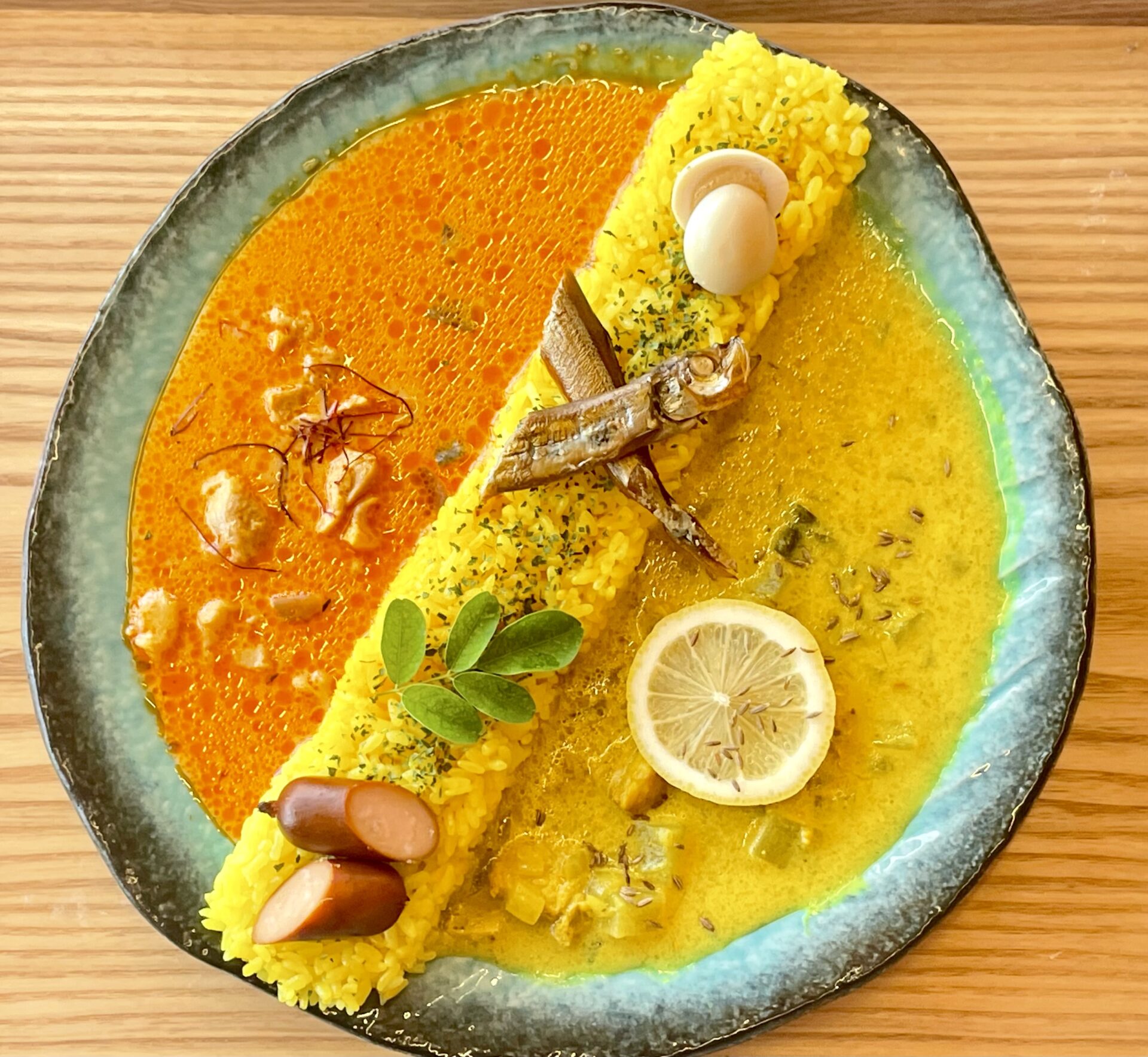 スパイスの香り、彩り豊かなプレート、海辺の穏やかな空気。