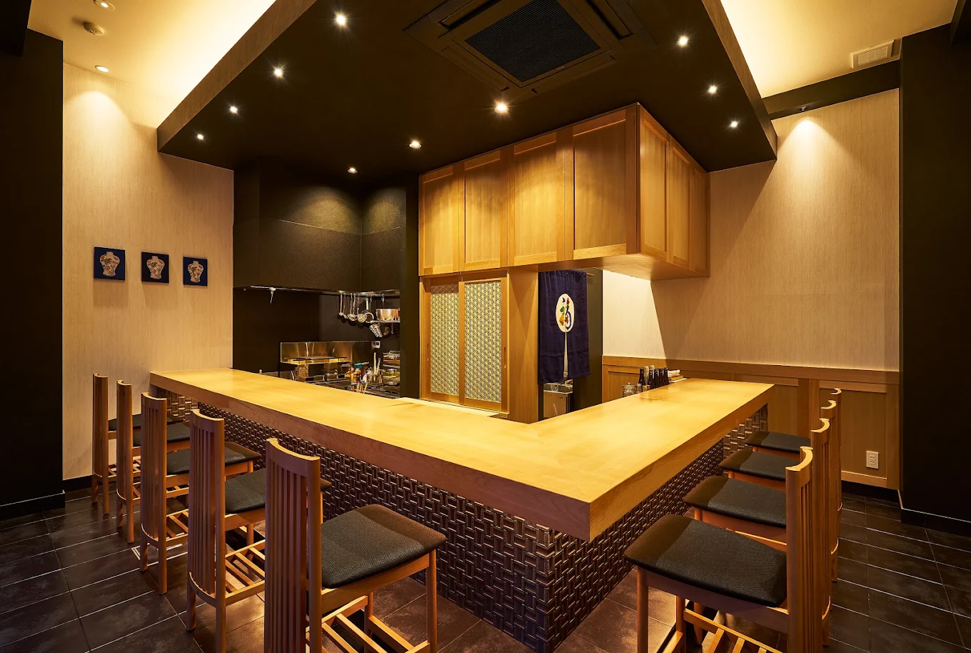 店内はカウンター席を中心に、少人数でもゆったりと過ごせる落ち着いた空間づくりがされています。料理人の手仕事を間近で感じながら食事を楽しめるカウンターは、まるで小劇場のような臨場感。大切な人との食事や記念日にもぴったりな個室も用意され、静かに料理と向き合う時間を過ごすことができます。照明や音楽にも気配りがあり、まさに“味わう時間そのもの”を大切にしているお店です。