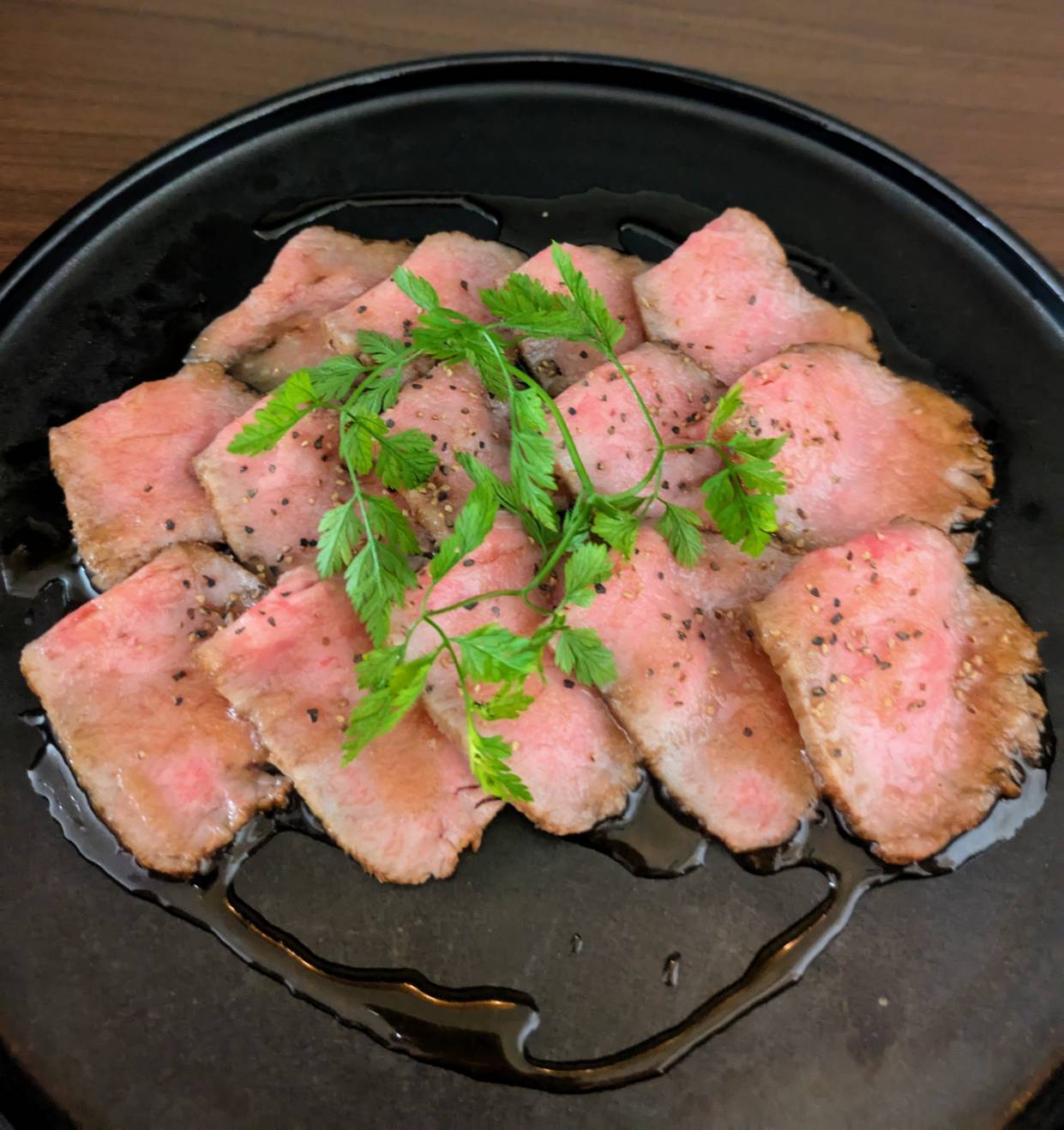 「肉の旨味を逃さないよう、温度と揚げ時間は秒単位で調整しています」とシェフ。黒毛和牛特有のきめ細やかな脂と赤身のバランスが絶妙で、ひと口噛むたびに肉汁と香ばしさが口いっぱいに広がる。